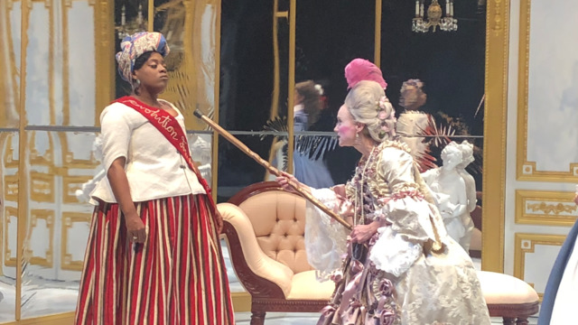 “Surprisingly enough, the one character who does manage to stay interesting throughout The Revolutionists is Marie Antoinette, played coyly by Katie Calahan as a spoiled, childish, but also ironic pawn of history, neither deluded by the perks of royalty nor reconciled to her final condemnation. There’s nothing queenly about Calahan’s Marie; she comes across as fragile, understated, simple in her enjoyment of life on the upper rung, but goodhearted too, and not nearly smart enough to affect the events whirling around her. This is a wholly unexpected, memorable performance.”